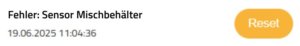 Wenn LED1, LED2 und LED3 alle dauerhaft rot leuchten ⚪🔴🔴🔴, liegt ein Fehler am Sensor des Mischtanks vor. Der Füllstandssensor könnte abgesteckt oder defekt sein. In diesem Fall geht der Geyser Pro in einen Sicherheitsstopp, da er die Füllstandskontrolle nicht korrekt durchführen kann.