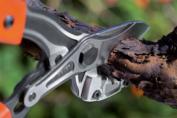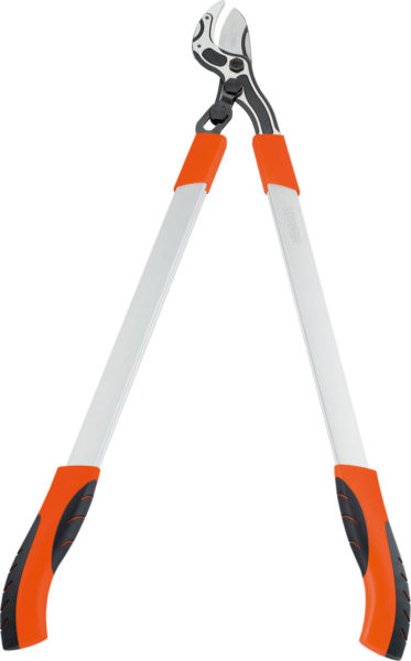 Professionelle Astschere mit Amboss-Schnitt und gebogener Klinge. Dank der Aluminium Griffrohre ist diese Schere sehr handlich, der Scherenkopf mit ausgereifter Übersetzungstechnik garantiert einen sauberen Schnitt mit geringem Kraftaufwand.