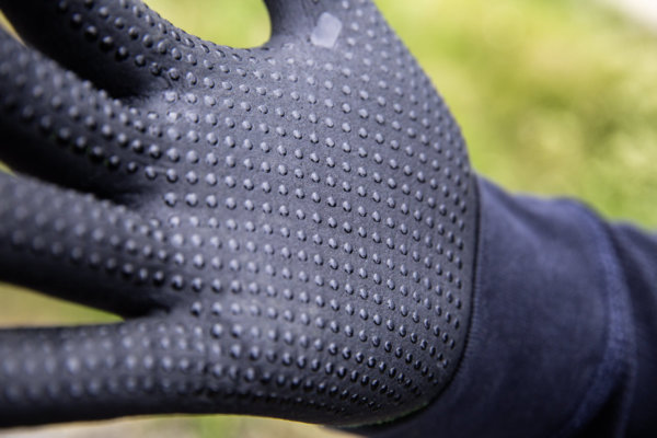 "Hergestellt aus Bambusfaser, die Feuchtigkeit von der Haut absorbiert und schnell beseitigt. Die Antirutsch-Punkte auf der Handfläche sorgen für einen sicheren und rutschfesten Halt.