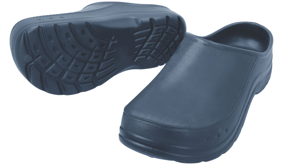 Die dunkelblauen Haus- und Gartenschuhe sind angenehm zu tragen und funktionell. Sie bestehen aus EVA-Material für Weichheit und hervorragende Wasserbeständigkeit. Sie haben eine geschlossene Zehenpartie für mehr Fußstabilität.