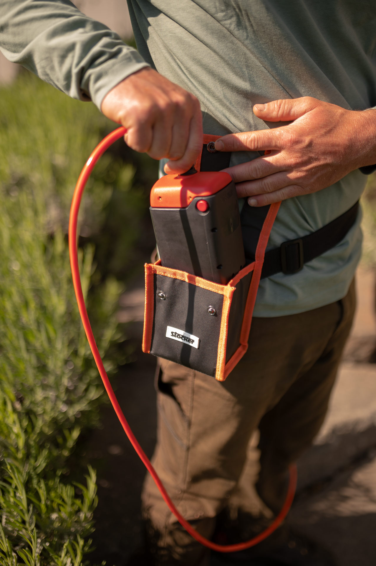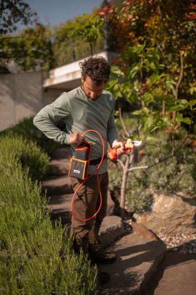 Der Akku kann leicht vom Gerät getrennt und im Holster verstaut werden, wodurch das Gewicht auf der Hand reduziert und die Ergonomie während der Arbeit verbessert wird.
