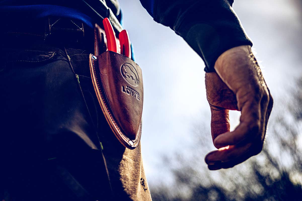 Scheide aus 100% echtem Leder für Baumscheren. Entworfen, um in den Gürtel gesteckt und an der Hüfte des Benutzers platziert zu werden, so dass es immer zur Hand ist!