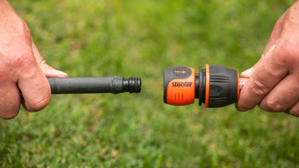 Das Verbindungsstück für Schläuche ist ein praktisches Accessoire: an einem Ende hat er einen klassischen Schnellanschluss für Gartenrohre. Es ermöglicht den Anschluss eines Gartenschlauchs an die Microbewässerungsanlage, ohne dass das System vom Wasserhahn getrennt werden muss.