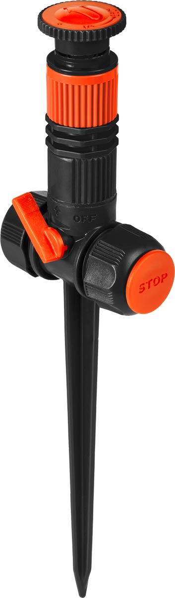 Thanks to the adjustable spraying head it is possible to irrigate with a 360° circular jet or to choose and set the direction of a smaller spraying angle.