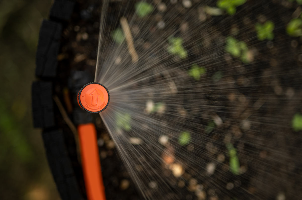 Thanks to the adjustable spraying head it is possible to irrigate with a 360° circular jet or to choose and set the direction of a smaller spraying angle.