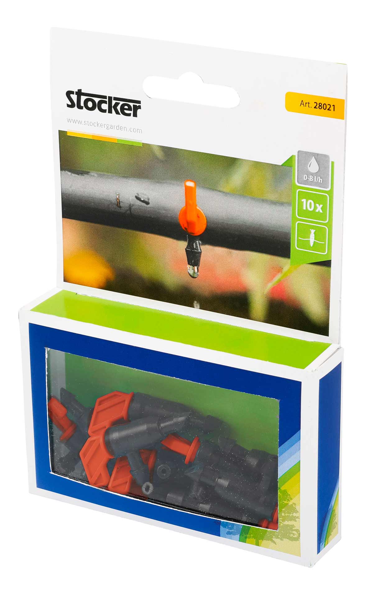 The adjustable dripper releases, drop by drop, the right amount of water for the plants. By turning the coloured valve the user can adjust the flow, from 0 to 8 litres/hour.