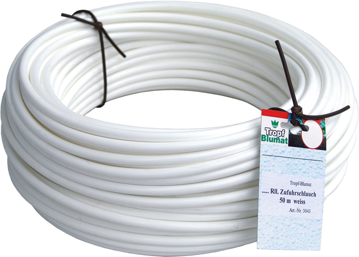 White supply hose for use on bright surfaces. With black opaque internal coating for avoiding the formation of algae inside the hose.