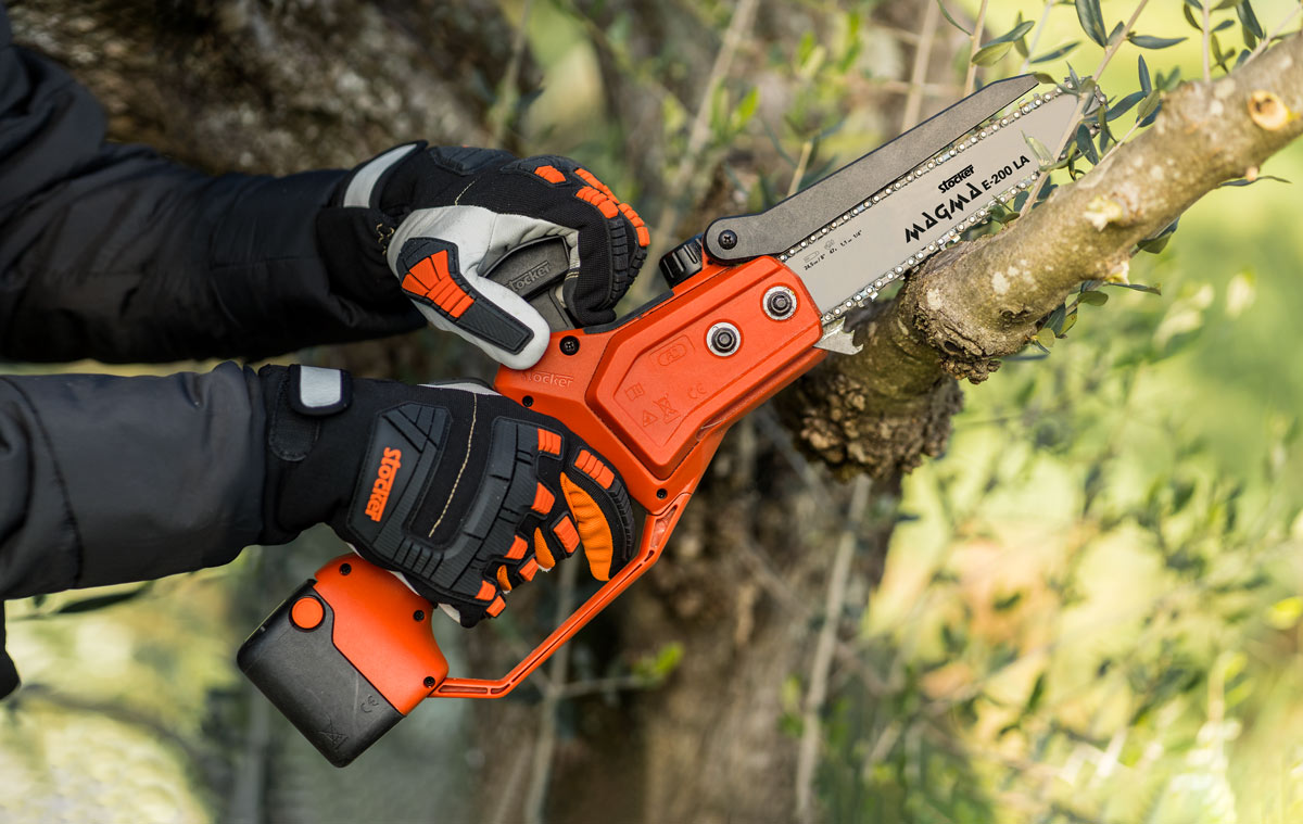 A maintenance kit, double battery charger and user manual complete the package, while the battery is not included. In fact, the chainsaw Magma E-200 LA 21 V is an integral part of the Magma System 21 V and there are many accessories that can be connected and integrated to facilitate work, performance and maintenance.