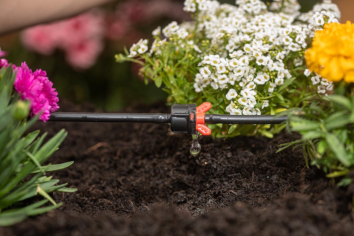 The in-line dripper releases, drop by drop, the right amount of water for the plants. The water flow is 5 litres/hour.