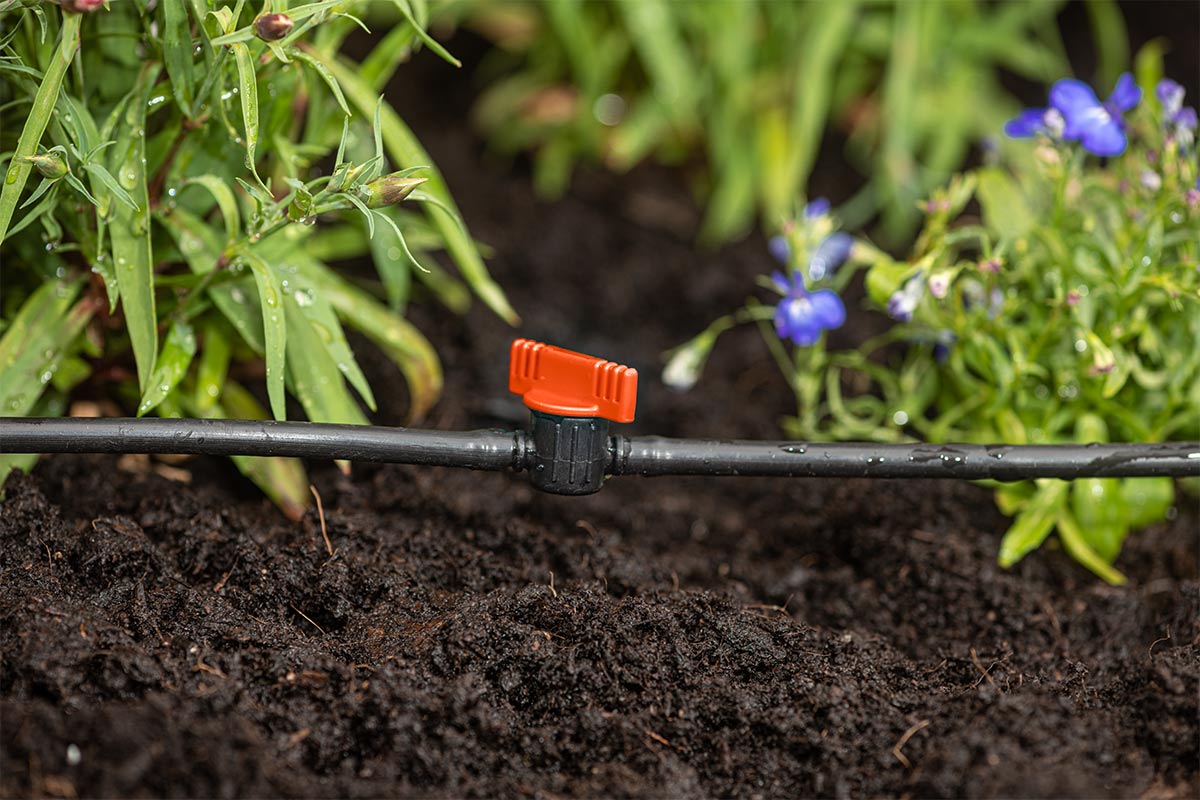 The shut-off valve gives the user more flexibilty, as it allows to choose when to open or close the flow for specific plants. Simply turn the coloured head in order to activate it.