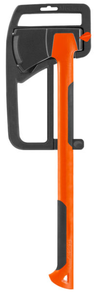 The cutting-head is made form high-carbon steel and an anti-friction coating. Thanks to its shape and the non-slip material, the handle is ergonomic and light: its structure is empty inside to reduce the vibrations caused by the impact with the wood. The back side of the cutting-head is also usable as hammer. The ax is also equipped with a cover with a handle to carry it.