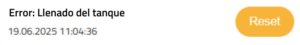 Cuando LED1 y LED2 están en rojo fijo ⚪⚪🔴🔴, significa que ha ocurrido un “Timeout de llenado”. Esto indica que el tanque no se ha llenado correctamente en los 180 segundos previstos, es decir, el sistema no pudo completar el proceso de llenado a tiempo.