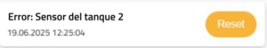 El LED1 rojo fijo y el LED3 naranja fijo ⚪🟠⚪ 🔴 indican un error en el sensor de nivel del tanque de producto 2 de 5 L, acompañado de un pitido de error.