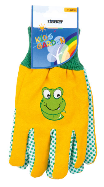 Guantes de jardín para niños, de color amarillo con una rana impresa. ¡Son perfectos para jugar en el jardín! Leer más Añade a favoritos- Descripción producto