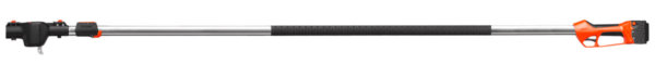 Por lo tanto, el operador podrá podar cómodamente desde el suelo. Para una mayor seguridad del podador, también hay una protección extraíble para la mano. El sistema de bloqueo PROFI garantiza una perfecta estabilidad del mango durante el uso. La herramienta también está perfectamente equilibrada, gracias al contrapeso del producto en el cabezal con el de la batería en la base.