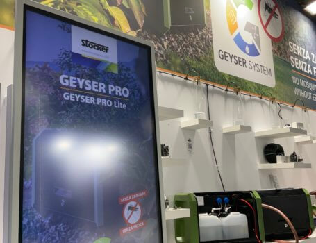 Tra le novità del 2025 spiccano le nostre soluzioni a batteria, come la linea 21 V Power Line e il Geyser System. A queste si aggiungono i nuovi Geyser PRO e Geyser PRO Lite, sistemi avanzati e automatici per il controllo degli insetti tramite nebulizzazione, progettati per spazi esterni di grandi dimensioni.