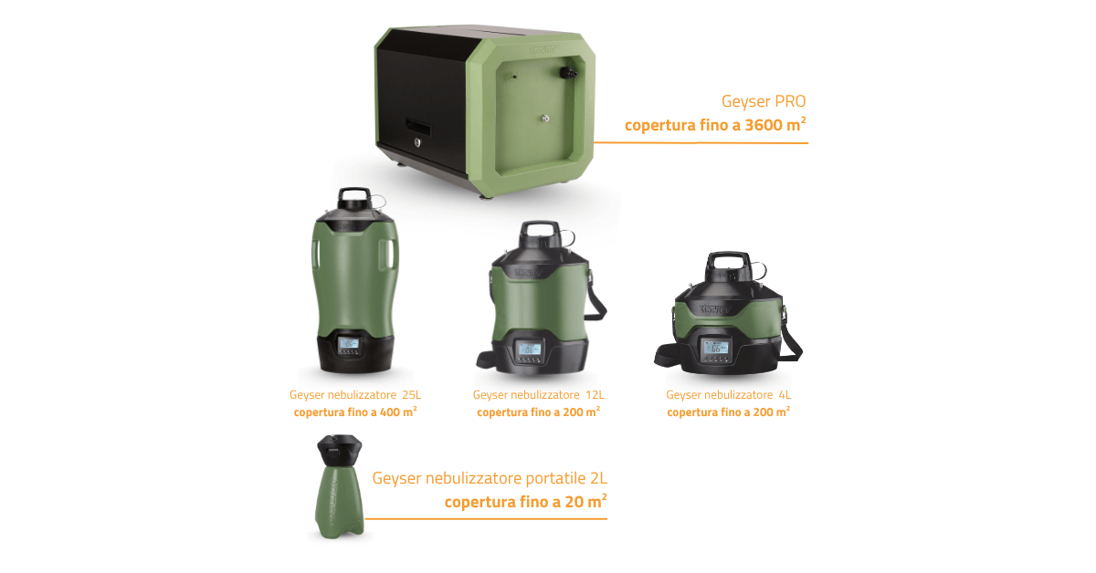 Grazie a feedback reali e test sul campo, abbiamo perfezionato ogni modello: dal compatto Geyser Portatile al potente Geyser Pro, per aree fino a 3.600 m².