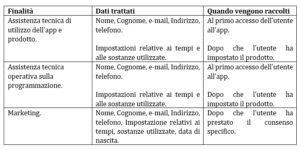 - [tempi d’uso del prodotto e sostanze utilizzate];