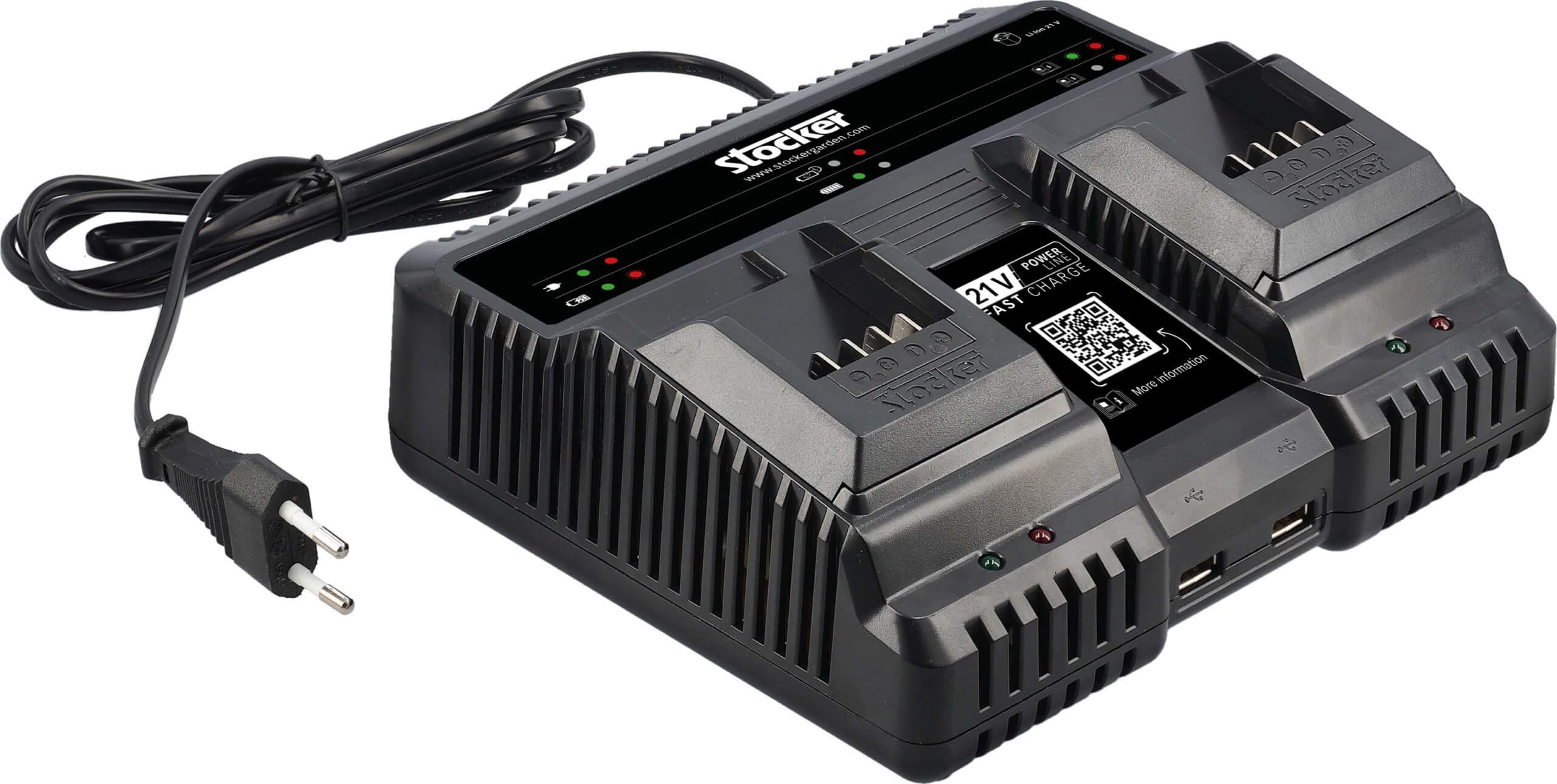 Il caricabatterie Power 21 V Fast Charge è la soluzione ideale per ricaricare rapidamente e in modo intelligente le tue batterie. Dotato di indicatori LED ti permette di controllare lo stato di ricarica in modo semplice e immediato. Inoltre, grazie alla doppia porta di ricarica, puoi ricaricare fino a 2 batterie contemporaneamente, ottimizzando i tempi di lavoro.