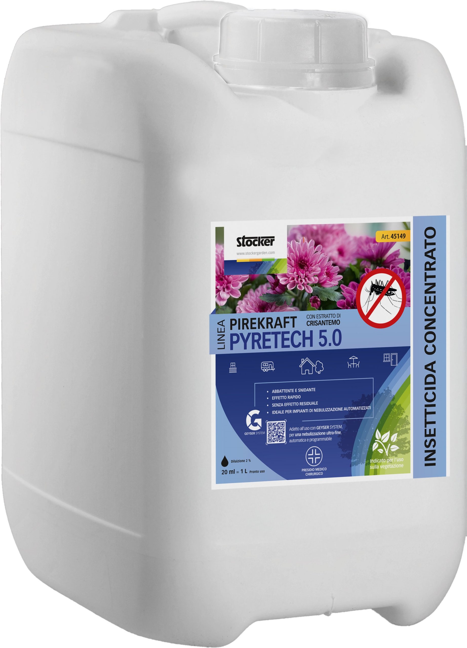 Caratteristiche: la linea Pirekraft è un insetticida concentrato in microemulsione acquosa, ideale per trattamenti a barriera e per eliminare infestanti in modo rapido e efficace. Grazie all'estratto di crisantemo, agisce con un effetto abbattente e snidante immediato contro insetti volanti (zanzare, mosche) e striscianti (scarafaggi). È perfetto per ambienti pubblici, aree residenziali, industrie alimentari, scuole, ospedali e molto altro.