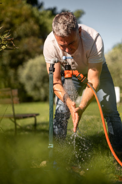 "Evita l'attorcigliamento del tubo da giardino grazie all'attacco snodabile a 360°