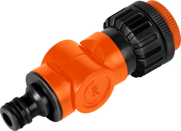 "Evita l'attorcigliamento del tubo da giardino grazie all'attacco snodabile a 360°.