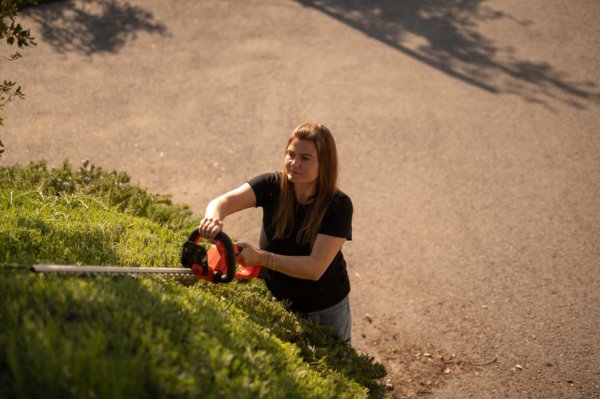 La lama, lunga 50 cm, è dotata di una protezione in punta che permette di rifinire il lavoro attorno all‘intera siepe senza danneggiare altri oggetti.