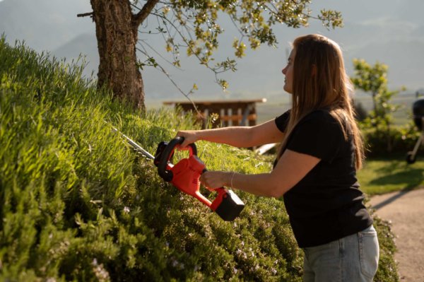 Tagliasiepi a batteria 21 V, progettato per il taglio e la rifinitura di siepi di ogni tipo.