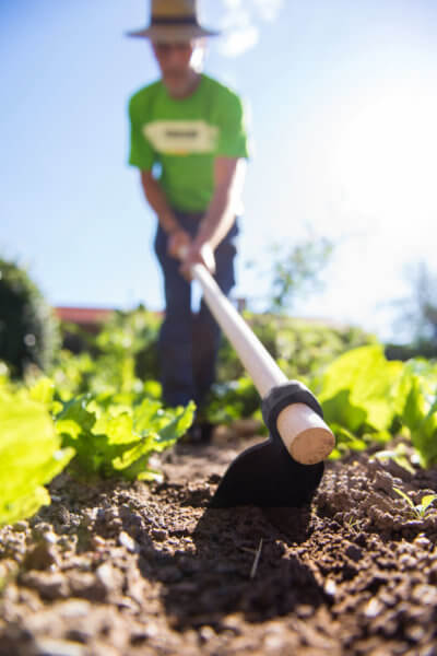 Zappa a occhio tondo con manico per un' efficiente lavorazione del terreno.